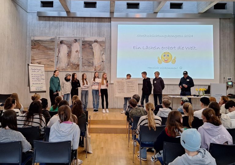 Unter dem Motto „Ein Lächeln erobert die Welt“ haben wir, ein großer Teil der neuen Streitschlichter*innen, vom 4. bis 6. März 2024 in Bad Boll am Streitschlichtungskongress teilgenommen.